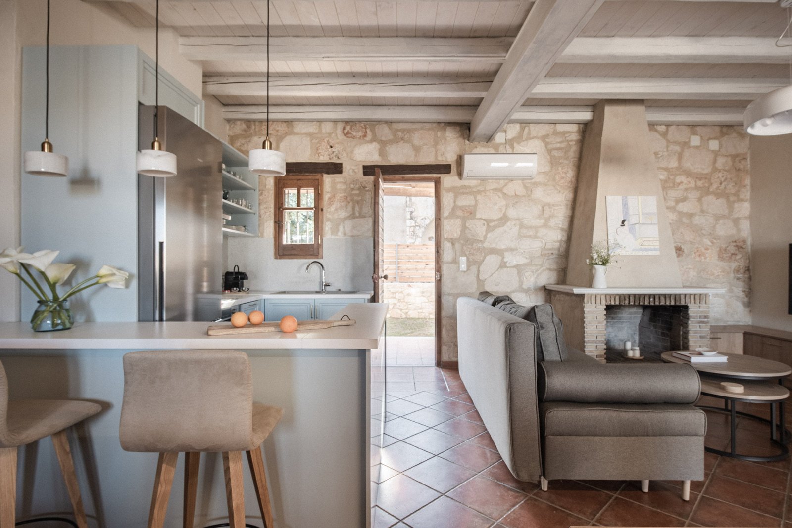 Artemis Villa features traditional stone architecture and rustic wooden ceilings, combined with modern amenities and luxurious comforts. Spread across two floors, the villa offers two cozy bedrooms with comfortable queen beds made with natural products from Coco-mat company, ensuring a restful and rejuvenating sleep. An additional sofa bed is available to accommodate up to six guests comfortably. The cozy living room with a fireplace provides the perfect place to snuggle up with loved ones on cooler evenings, while the fully equipped kitchen offers everything you need to prepare your own meals. Step outside, relax and enjoy lazy summer days lounging by your own private saltwater pool, surrounded by a lush and vibrant garden. And as the evening draws in, fire up the grill and indulge in a delicious BBQ, while taking in the beautiful sunset views. Escape the hustle and bustle of the busier tourist areas and immerse yourself in the authentic Zakynthos island lifestyle, with all the modern comforts and luxuries you could wish for.